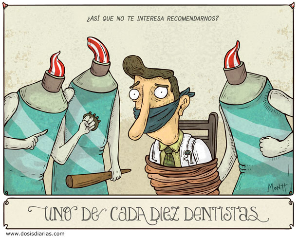 Alberto Montt es el creador de “dosis diarias” un blog que agrega un toque de humor al nuevo día. “Una imagen vale más de mil palabras” un dicho viejo, aburrido, re-contra usado pero que para la ocasión se puede decir que viene “como anillo al dedo” (otro de esos dichos insoportables). Como dice el amigo Montt miren sin compromiso y si les gusta pasen a ver el sitio.